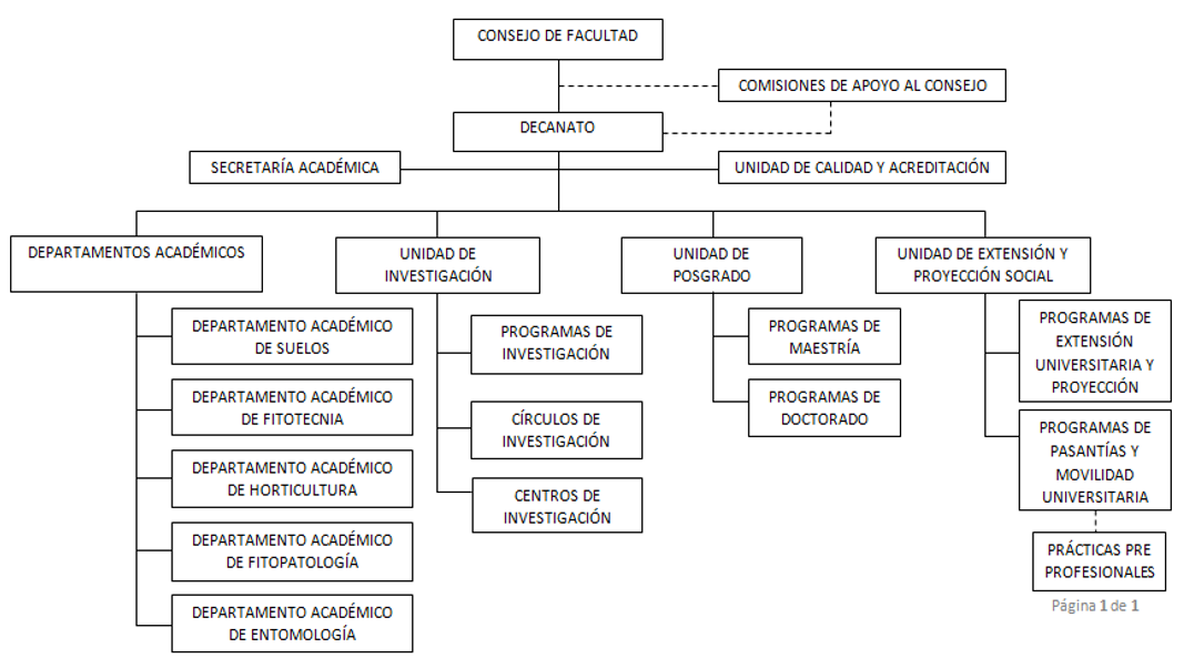 El decanato de Agronomía cuenta con personal administrativo para cumplir con las labores académicas, en las áreas de secretaria de decanato, gestión académica, unidad de investigación, unidad de acreditación, unidad de posgrado y área de comunicación y soporte. Además, la Facultad tiene 84 docentes que realizan investigación, extensión agrícola y programas internacionales de cooperación. Existen 27 profesionales y técnicos que asisten a los docentes en las actividades de campo, laboratorio, clínicas, talleres e invernaderos.