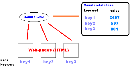 CGIMachine-Counter is a fast 32-Bit-CGI-Application for all Windows 95/NT-Servers. It includes 25 graphic number styles for the counter digits. All graphics are embedded in the EXE, so no separate graphics files are needed, resulting in a serving of server space. The counter can be used on all Web Pages on the server without multiple copies of the application, by setting a key for each Web Page that will have a counter. With the included Configuration-Software "Watchdog" you can create, manipulate or delete counters. Also you have an overview over all counters and their hits. 3 new functions in version 2.2 :