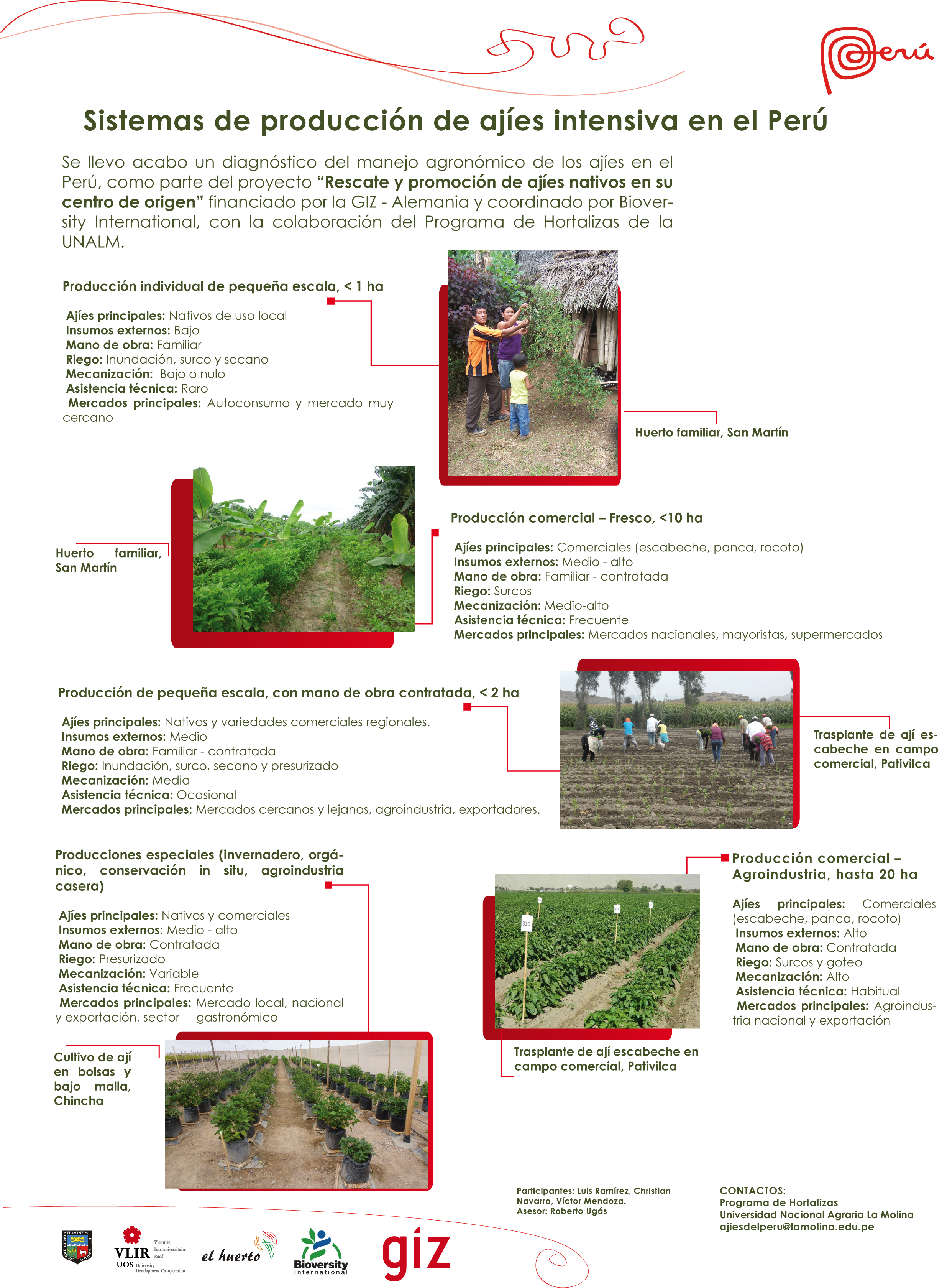 Consolidación de las colecciones INIA y UNALM de Capsicum nativos del Perú con una base de datos morfológica, genética, físico-química y culinaria integrada y análisis de las prioridades de conservación y desarrollo, como parte del Programa Nacional de Innovación Agraria (PNIA).