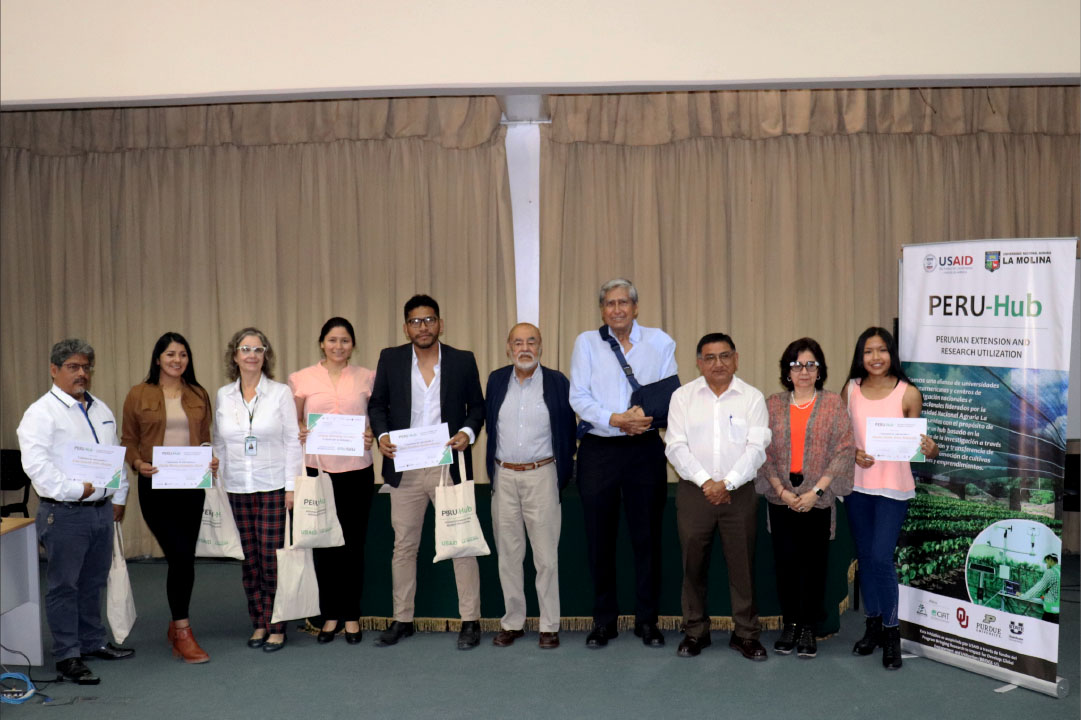 En una significativa ceremonia, la Universidad Nacional Agraria La Molina (UNALM) reconoció a los estudiantes cuyas tesis fueron ganadoras del concurso de financiamiento organizado por PERU-Hub. Este concurso, que dio por concluida su primera fase de convocatoria, tiene como objetivo desarrollar investigaciones relacionadas al propósito del proyecto PERU-Hub con el fin de generar conocimientos y tecnología que contribuyan a promover el desarrollo local y regional en San Martín, apoyar a los estudiantes en la culminación de sus estudios y fortalecer la investigación en la UNALM.