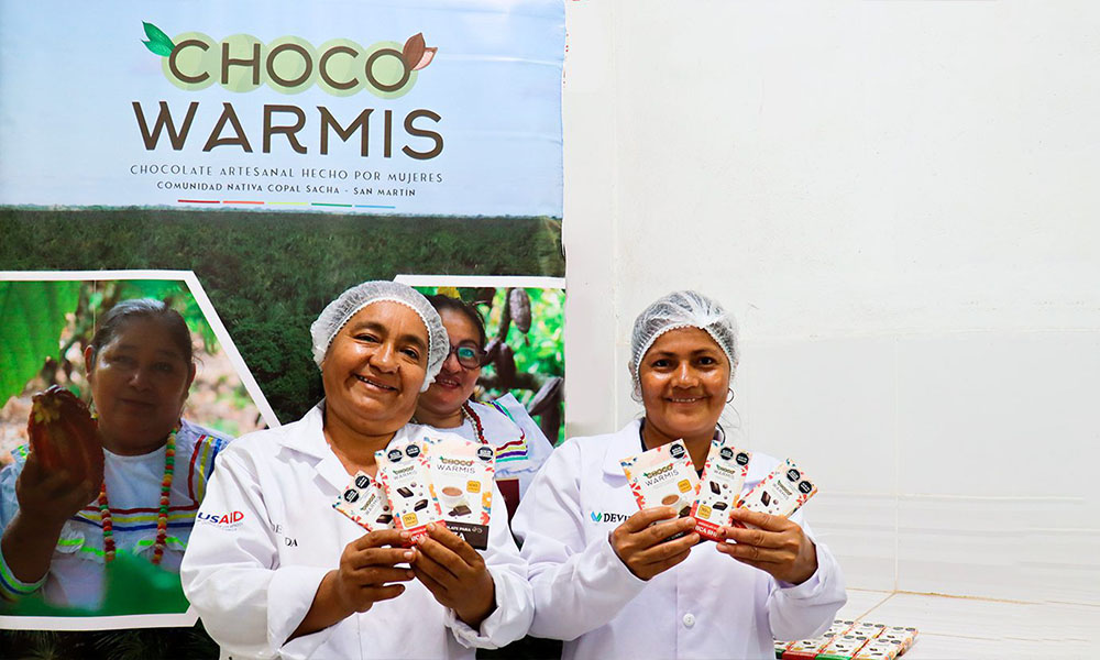 Se trata de la asociación Chocowarmis, un emprendimiento creado, hace diez años, con el objetivo de empoderar a las mujeres indígenas de la zona y brindarles una alternativa para acceder a una mayor independencia económica a través de la transformación del cacao a chocolate y sus derivados. Ellas son uno de los beneficiarios del proyecto PERU-Hub de la Universidad Nacional Agraria La Molina.