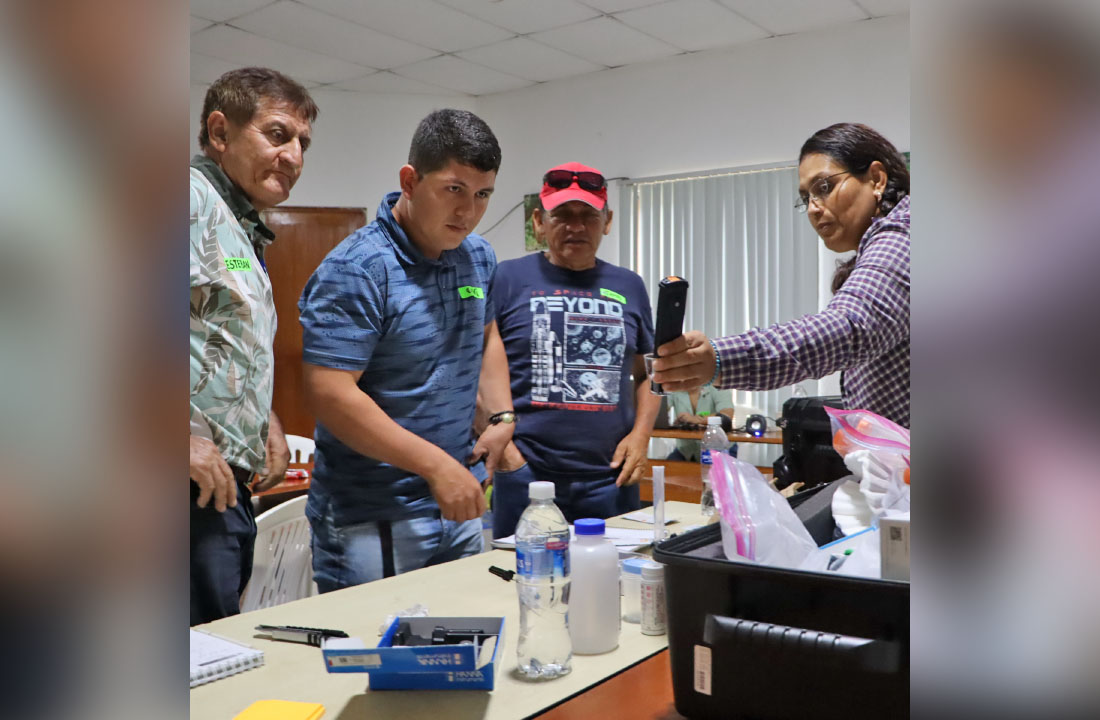 El taller se desarrolló del 23 al 27 de enero del presente año y contó con la participación de los extensionistas Ing. Remzi Zárate, Ing. Frans Sinarahua, Bach. David Briceño y Bach. Roy Rios. También, se contó con la presencia de los ingenieros del Instituto de Cultivos Tropicales (ICT), Juvicksa Amayada e Ing. Percy Dominguez, personal de los laboratorios de fitopatología y suelos, respectivamente.