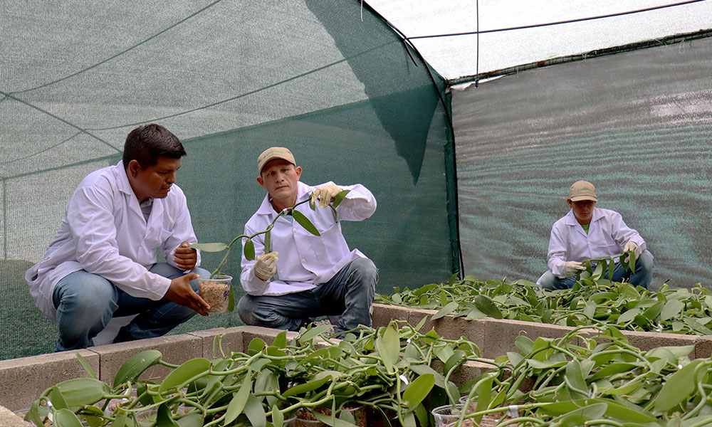 Durante su viaje a México, el doctor Blas contactó a la empresa Gaya, la más grande productora y exportadora de vainilla en México, y que ofrece las más competitivas variedades comerciales en el mundo. Tiempo después se procedió con los trámites para la importación de las variedades que produce esta empresa, teniendo como resultado la llegada de éstas en cajas y vía aérea a mediados del mes de setiembre.
