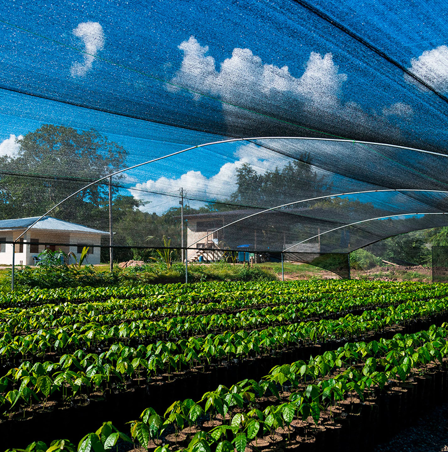 Vista panorámica del vivero en el fundo de la Universidad Agraria, en Tarapoto. Aquí PERU-Hub produce cultivos con semillas de alta calidad genética, utilizando tecnologías para aumentar la rentabilidad y el cuidado del medio ambiente.