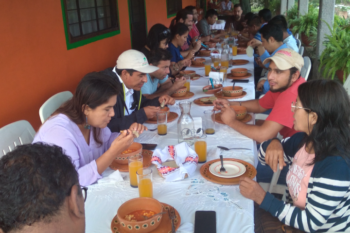 Delegación disfrutando de un desayuno tradicional en Papantla.